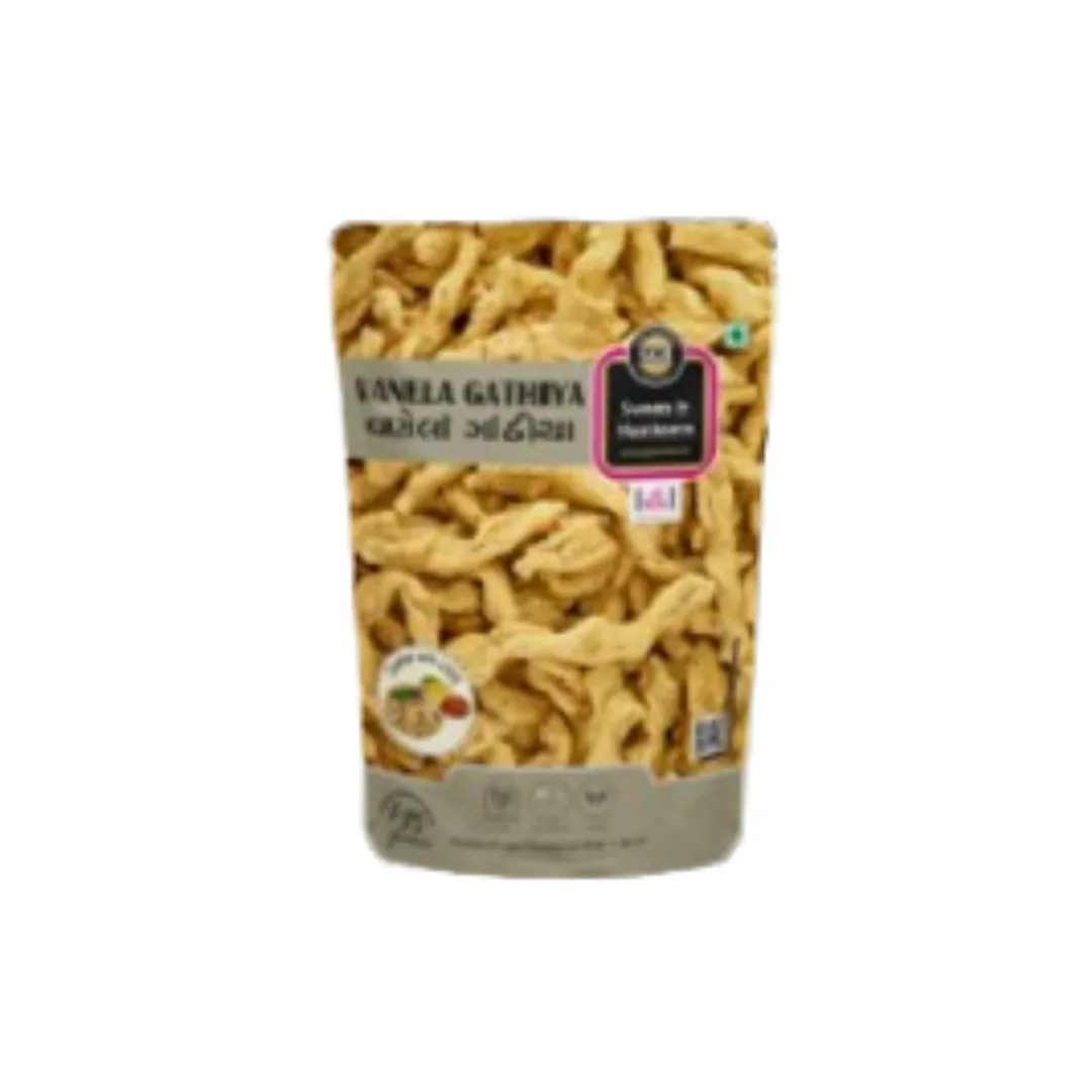 Savor the authentic taste of Gujarat with Vanela Ganthiya, a soft and mildly spiced snack made from premium besan (gram flour) and prepared using the traditional “vanela” (twisted dough) method. Known for its light, airy texture and subtle seasoning, Vanela Ganthiya is a popular tea-time favorite across Gujarati households.
